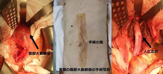 手術は全身麻酔で行います。胸部大動脈瘤と腹部大動脈瘤で手術方法が異なります。