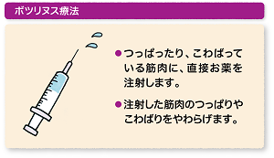 そのためボツリヌストキシンを注射すると、筋肉の緊張をやわらげることができるのです。