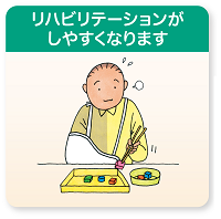 ●手足の筋肉がやわらかくなり、動かしやすくなることで、更衣、移乗、歩行などの日時う生活動作が行いやすくなります。
