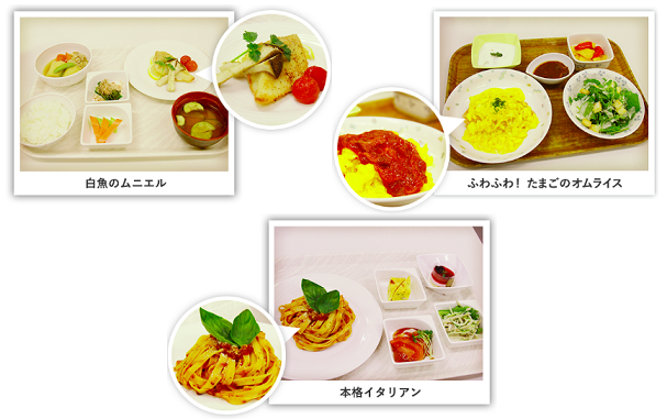 産後のお母さんたちの栄養と好みを考え、多彩なメニューをご用意しています。毎日の食事に野菜を多く取り入れ、彩りよく盛り付けています。和・洋・中とバラエティー豊かで好評です。