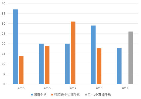 2019年より導入し現在はほぼロボット支援腹腔鏡手術で行っております。