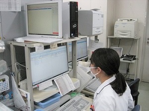 調剤業務では、電子カルテによるオーダリングシステムを導入しています。オーダリングシステムにより処方された薬の投与量、相互作用、投与期間などは処方監査システムにより適否を判断し、最終的には薬剤師が適切かどうかを判断しています。また処方情報は、自動錠剤分包機、散剤監査システム、水剤監査システムへ反映され正確な調剤ができ、リスクマネージメントの向上に役立っています。