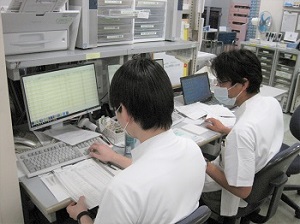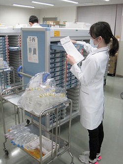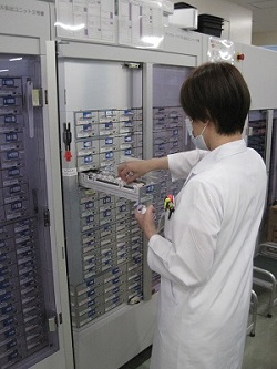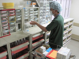●部署配置薬の供給:病院内で使用される医薬品はすべて薬剤部から供給しています。また各部署からの請求に対して妥当性を判断し、円滑な使用ができるよう医薬品を供給しています。
