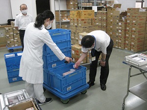 ▷人や生物に由来するものを原料として製造される医薬品等(これを「生物由来製品」という)で、そのうち厚生労働大臣の指定したものを特定生物由来製品(以下、血液製剤)と言います。例えば、輸血用血液製剤や人血漿分画製剤などがそれにあたります。非加熱製剤の使用が原因で起こったHIV感染事故以来、医療機関に対しては血液製剤の管理・使用に関しての記録を常に把握できるよう義務付けられました。薬剤部ではこの血液製剤の在庫管理や使用管理を行っています。