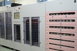 ●注射個人セット:最新のシステム設備を用いてより安全かつ効率的に患者さんの注射薬の取り揃えを行っています。また、入院・外来で使用する抗がん剤についても同様に個別にセットし、適切な投与スケジュールとなっているかを確認したうえで薬品を供給しています。