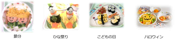 お正月・ひな祭り・お花見・ハロウィン等、年間20回以上の行事食を実施しています。