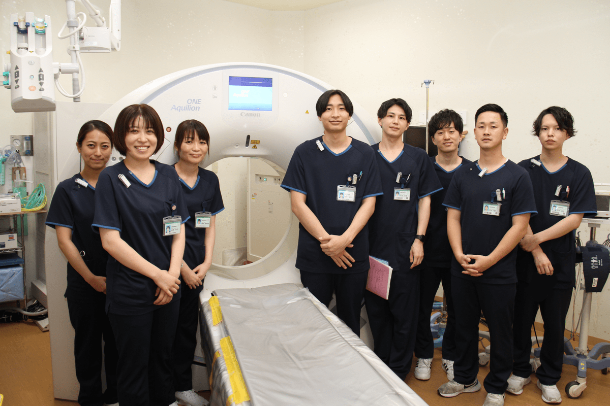 救命救急センターでは生命の危機に直面する患者さんに対応するため、迅速且つ的確な画像診断が求められます。私たちは、ドクターカーから直接CT室に入室させる「ダイレクトCT」にも対応し、更にMRIや血管造影と連携することによって検査の流れをスムーズにし、迅速な治療が開始できるようチーム一丸となって取り組んでおります。