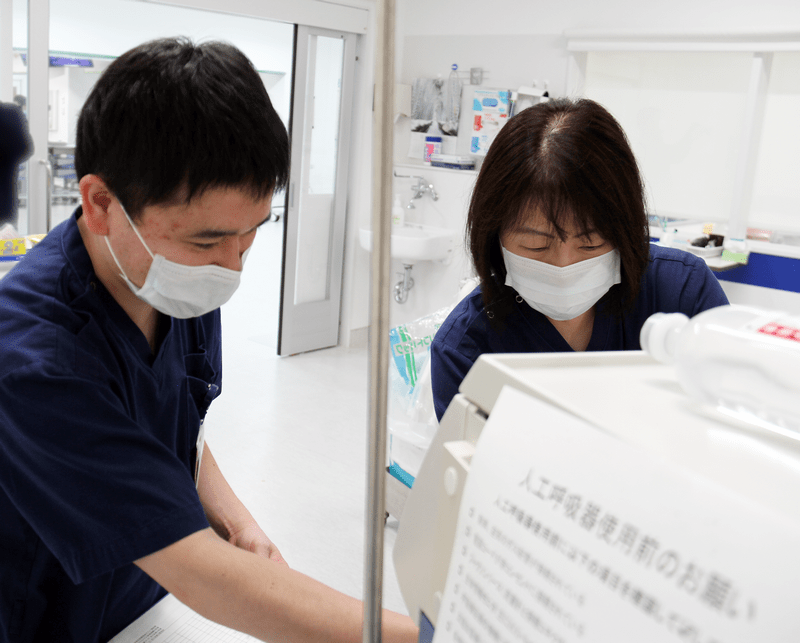 呼吸ケアチームの一員として人工呼吸器を装着している患者さんのラウンドを行ったり、人工呼吸器の安全ラウンドを横断的に行っています。