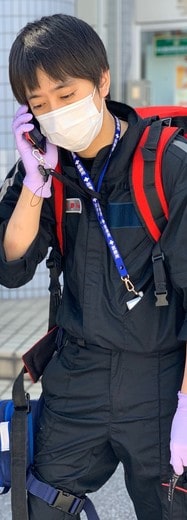 ドクターカー業務では救命処置はもちろんのこと救急隊と病院スタッフのつなぎ役として搬送のお手伝いや現場の安全管理を行っています。