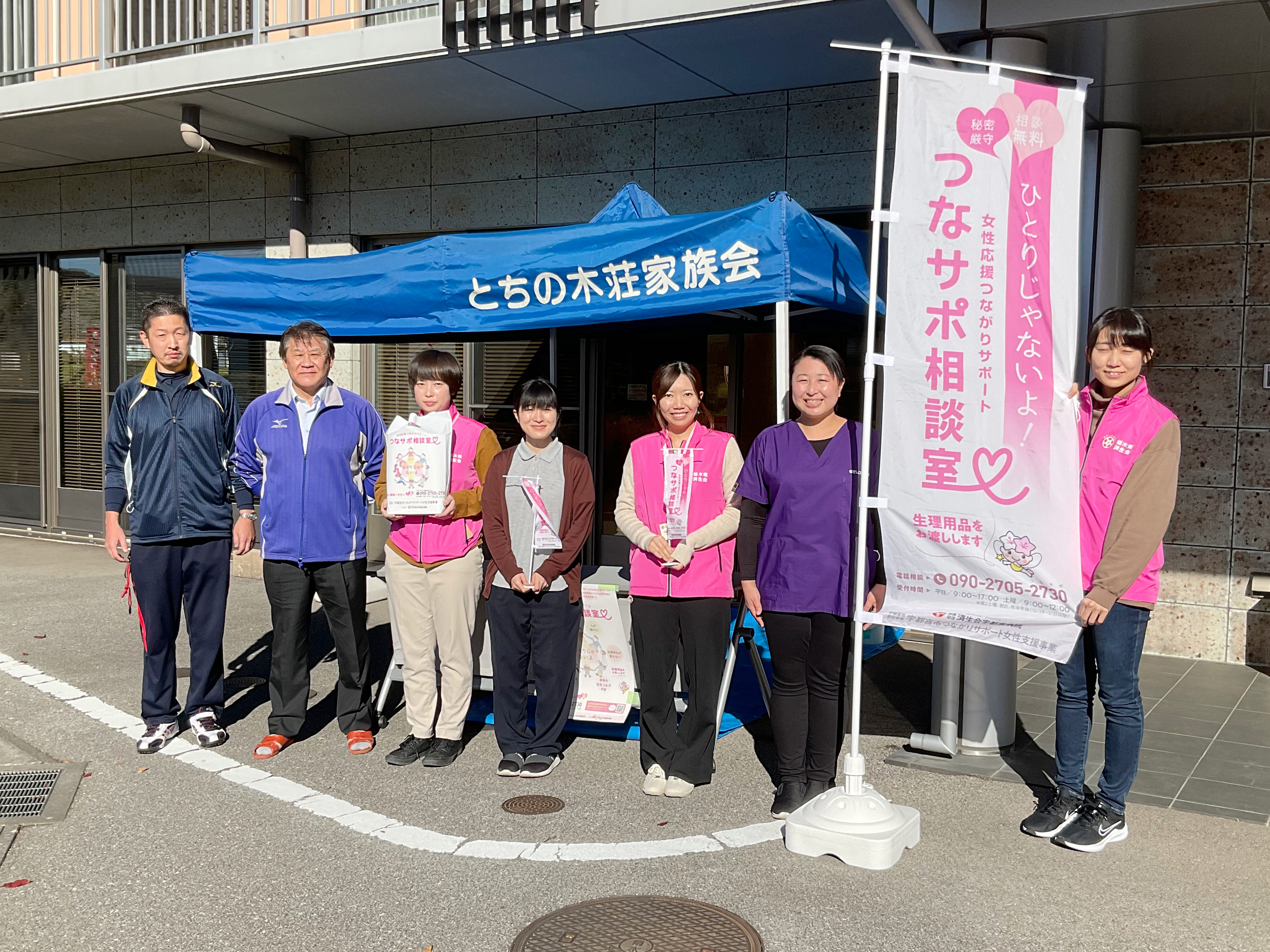 新型コロナウイルス感染症などの影響で、不安や困難を抱える女性が孤立化・潜在化する中、支援が十分に行き届いていない女性に対してきめ細かな支援を強化するため、2021年度、宇都宮市から委託され「宇都宮市つながりサポート女性支援 事業」を開始しました。生理用品の無料配布をきっかけに、相談支援の輪につなげられるよう、院内の常設窓口の設置や、地域に出向いた出張相談会(臨時相談会)を定期的に開催しています。また、身近な生活圏域で相談や生理用品を無料提供 できるように「つなサポ相談室」の連携機関を構築しました。地域内の病院や診療所、NPO法人や子ども食堂、地域包括支援センター等、多くの職域に拡げ、重層的でかつ全世代型の相談支援体制が構築でき、地域力の向上にも繋がりました。